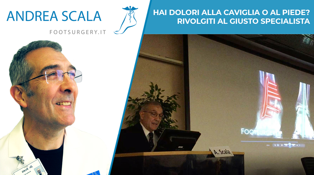 Specialista in Ortopedia e Traumatologia e in Medicina dello Sport, il dottor Andrea Scala è uno dei più rinomati e noti specialisti e chirurghi ortopedici del piede in Italia. Il suo curriculum denota un’esperienza invidiabile sul campo; vanta collaborazioni a livello internazionale, collaborazioni con l’Aeronautica Militare, inoltre è stato un vero precursore nella cura di diverse patologie tra cui la protesi caviglia, la protesi di caviglia i stampa 3d da lui stesso progettata, ricostruzione dei legamenti della caviglia ( intervento essenziale per gli sportivi, così come la ricostruzione del crociato nel ginocchio) piede paralitico, Malattia di Haglund, alluce valgo che tratta con la tecnica da lui stesso inventata e riconosciuta a livello internazionale, grazie alla pubblicazione dei suoi lavori negli U.S.A. , alluce rigido, piede piatto e Neuroma di Morton.