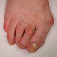 Il mancato appoggio sull’alluce sposta il peso sui metatarsi laterali e sulle dita piccole. La metatarsalgia compare quando i metatarsi laterali, le capsule articolari, i tendini ed i legamenti delle dita piccole sono iper-sollecitati e sovraffaticati. Si formano calli dolorosi, impossibili da rimuovere. Spesso le pazienti con l’alluce valgo chiedono la cura del terribile dolore della metatarsalgia! Quando la malattia viene trascurata i tendini delle dita piccole si contraggono al punto tale da formare le “dita a martello”. Indossare le scarpe e camminare in queste condizioni diventa una pena.