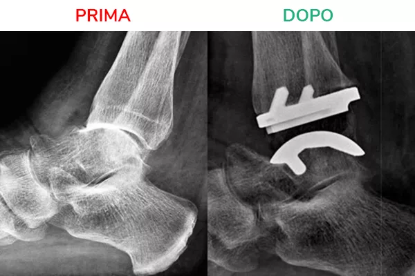Attraverso l’operazione protesica è possibile eliminare il dolore senza perdere la mobilità, in quanto si va a sostituire l’articolazione della caviglia danneggiata con una artificiale: l’impianto riproduce la naturale fisiologia e dona libertà di movimento eliminando altresì il dolore.
