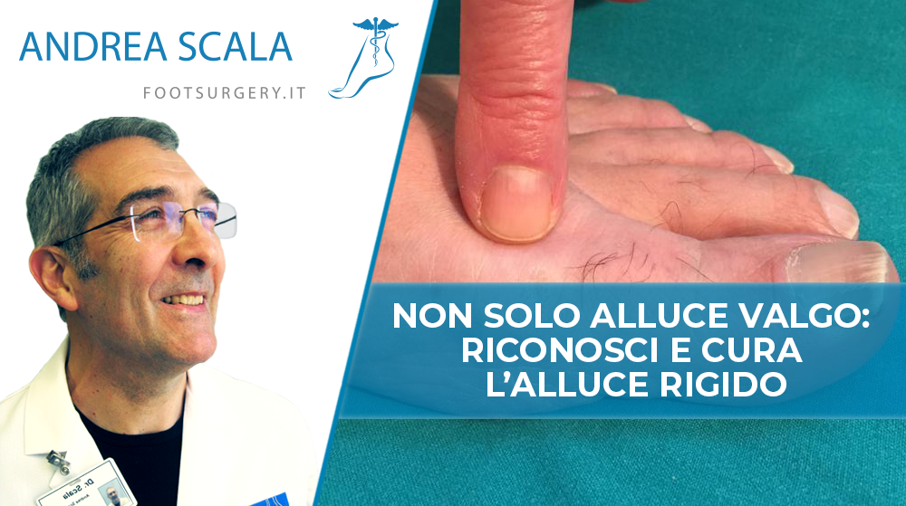 Questa mancanza di consapevolezza è dovuta soprattutto al fatto che non sempre il dolore viene percepito dai pazienti in corrispondenza dell’alluce, ma spesso nelle falangi e nei metatarsi delle dita minori. Tuttavia, l’Alluce Rigido ha una sua sintomatologia specifica e anche un aspetto caratteristico che un buon chirurgo ortopedico sa distinguere perfettamente dall’Alluce Valgo. Il Dottor Andrea Scala, che è il miglior Chirurgo Ortopedico del piede In Italia, saprà riconoscere e risolvere in modo definitivo il vostro problema.